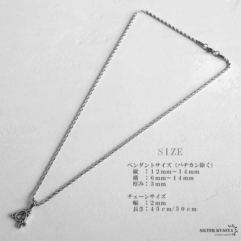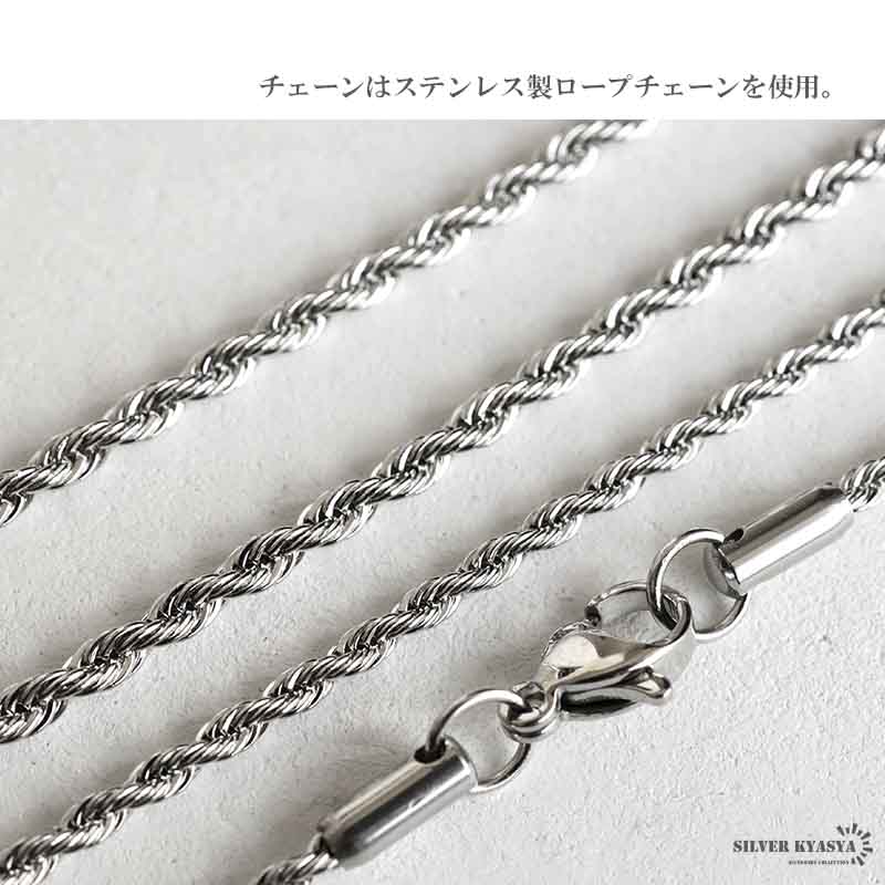 ペンダントトップにはシルバー925素材を採用。シルバー925は、銀含有率(純度)92.5%を示し、一般的に純銀として扱われています。サビや劣化等もほとんどありません。また、チェーンには頑丈なことで知られるステンレス素材を採用。耐水性が高く水場での着用も可能です。シルバー925・ステンレスどちらも金属アレルギーが出にくいとされており、アクセサリーとして重宝される金属です。