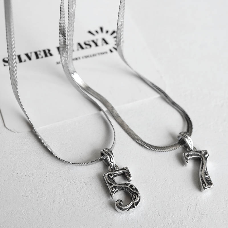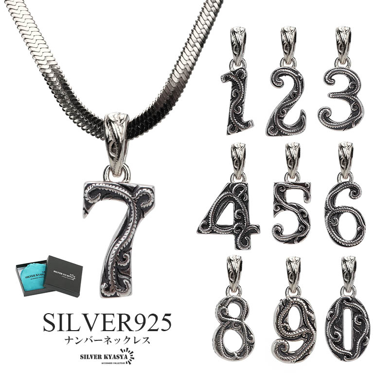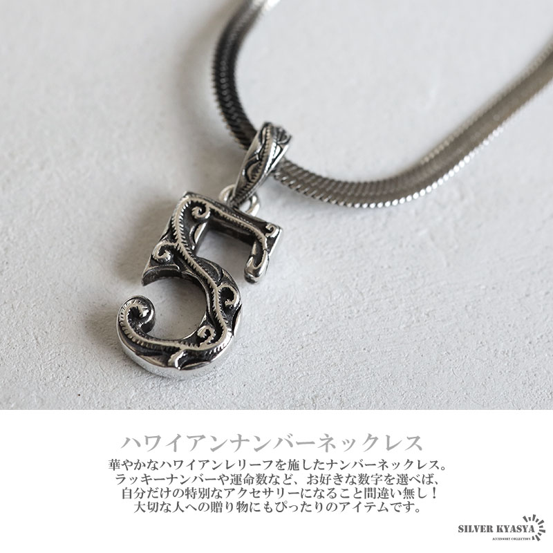 ナンバーネックレス ハワイアンネックレス アンティークシルバー ステンレス シルバー925 数字ネックレス スネークチェーン 専用BOX付属 爆買