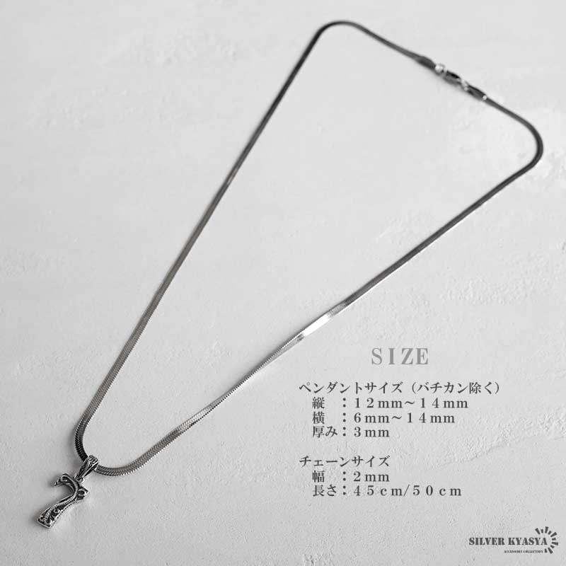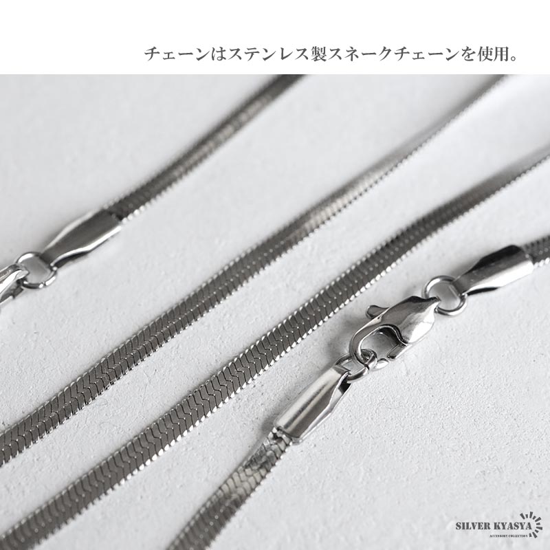 ペンダントトップにはシルバー925素材を採用。シルバー925は、銀含有率(純度)92.5%を示し、一般的に純銀として扱われています。サビや劣化等もほとんどありません。また、チェーンには頑丈なことで知られるステンレス素材を採用。耐水性が高く水場での着用も可能です。シルバー925・ステンレスどちらも金属アレルギーが出にくいとされており、アクセサリーとして重宝される金属です。