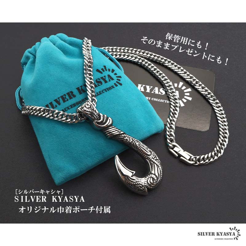 ステンレス フィッシュフックネックレス 釣り針ネックレス ハワイアン カレイキニ 6面カット ダブル喜平チェーン ごつめ 重厚 大ぶり 金属アレルギー対応 爆買