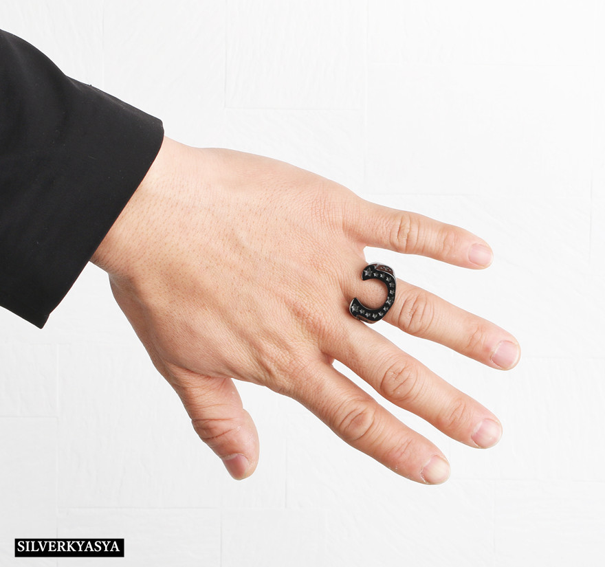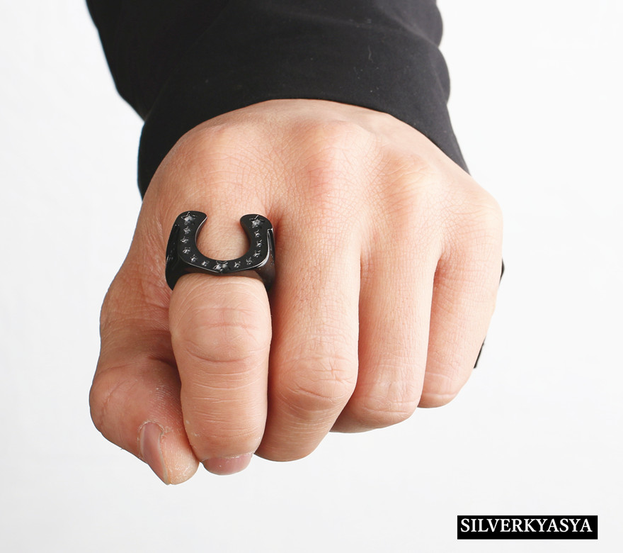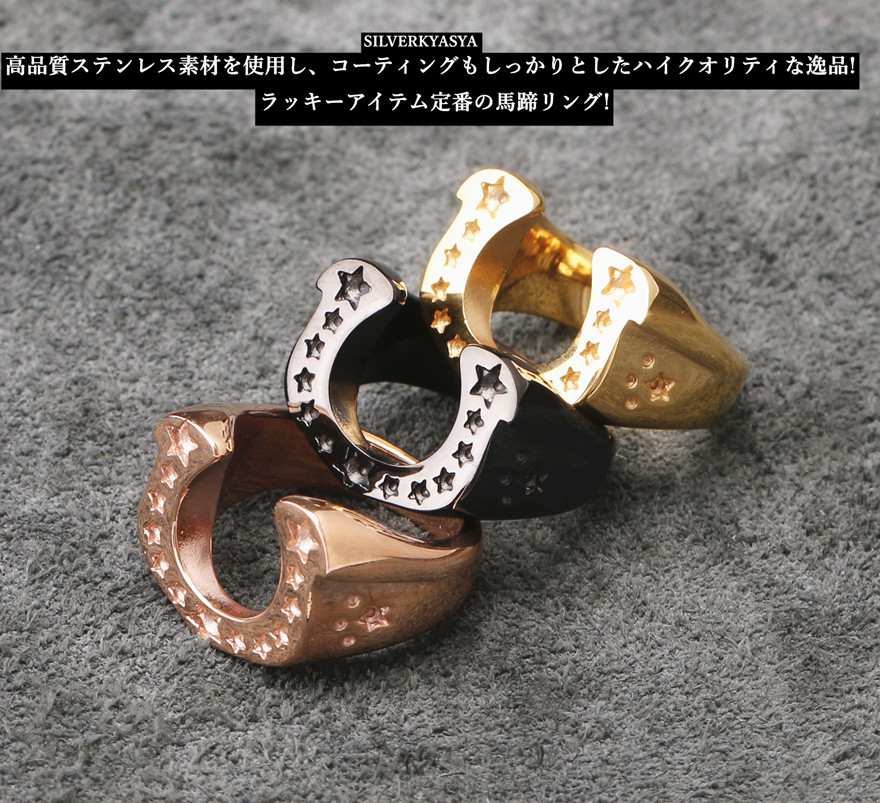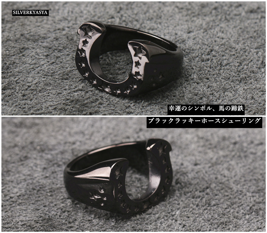 ステンレス リング ホースシューリング 黒 馬の蹄鉄 リング 馬蹄リング メンズ レディース