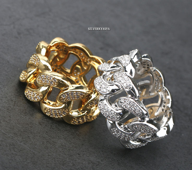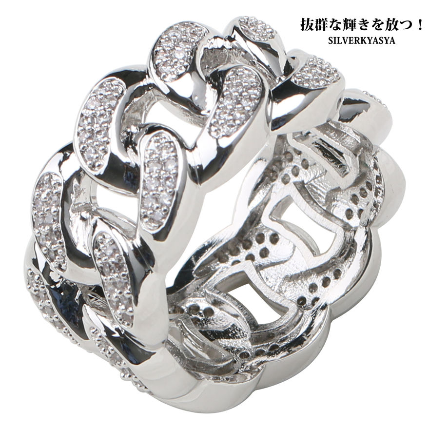 銀色 シルバー 喜平チェーン リング キヘイリング 指輪 チェーン デザイン ジルコニア パヴェリング CZ キラキラ hiphop ヒップホップ B系