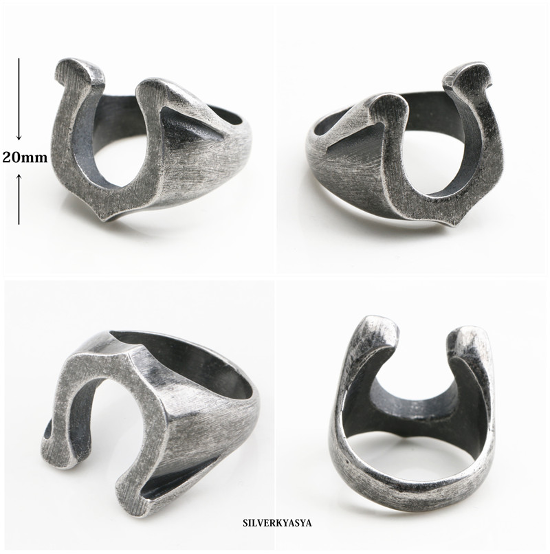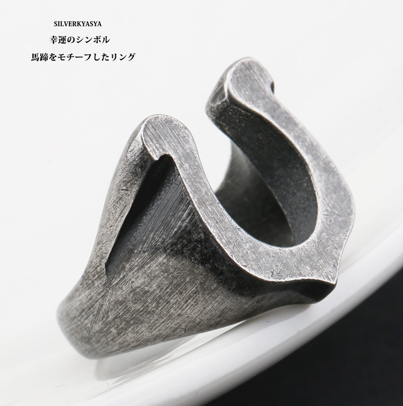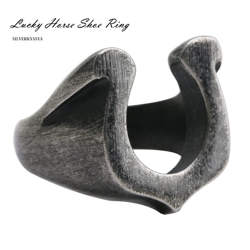 ステンレス 馬蹄 指輪 シルバー ホースシューリング 燻 リング メンズ 指輪 馬蹄リング 馬の蹄 U リング ラッキーアイテム 人気