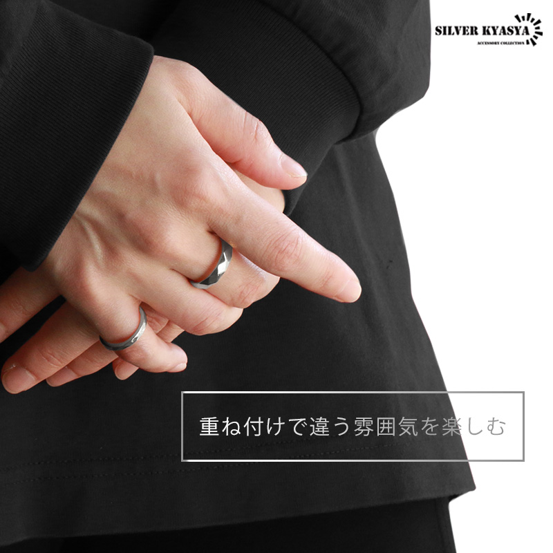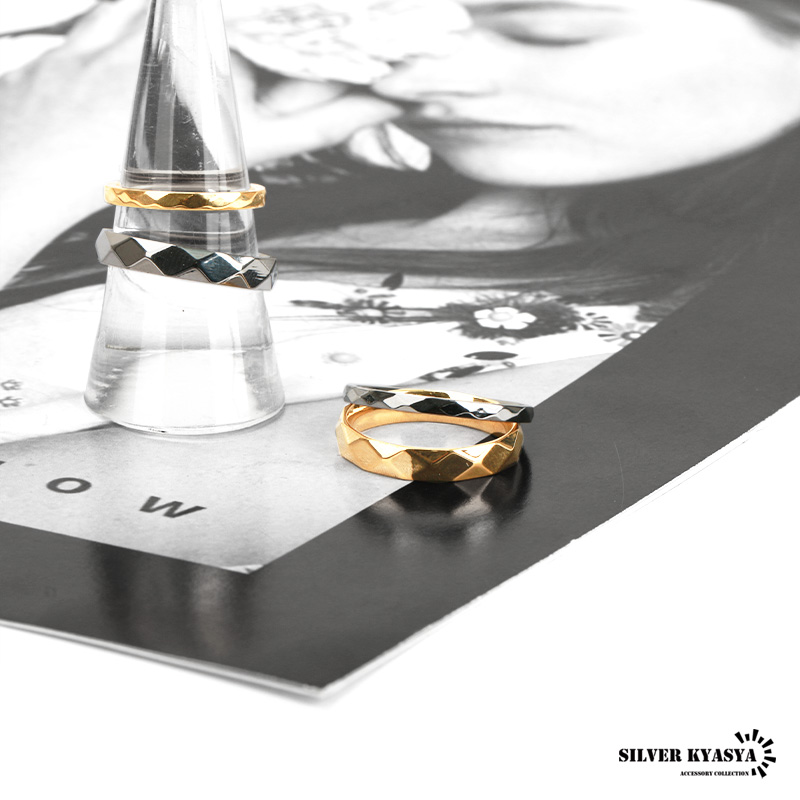 ダイヤカット リング シルバー シンプル ステンレス 指輪 細身 華奢 重ね付け アレルギー対応リング