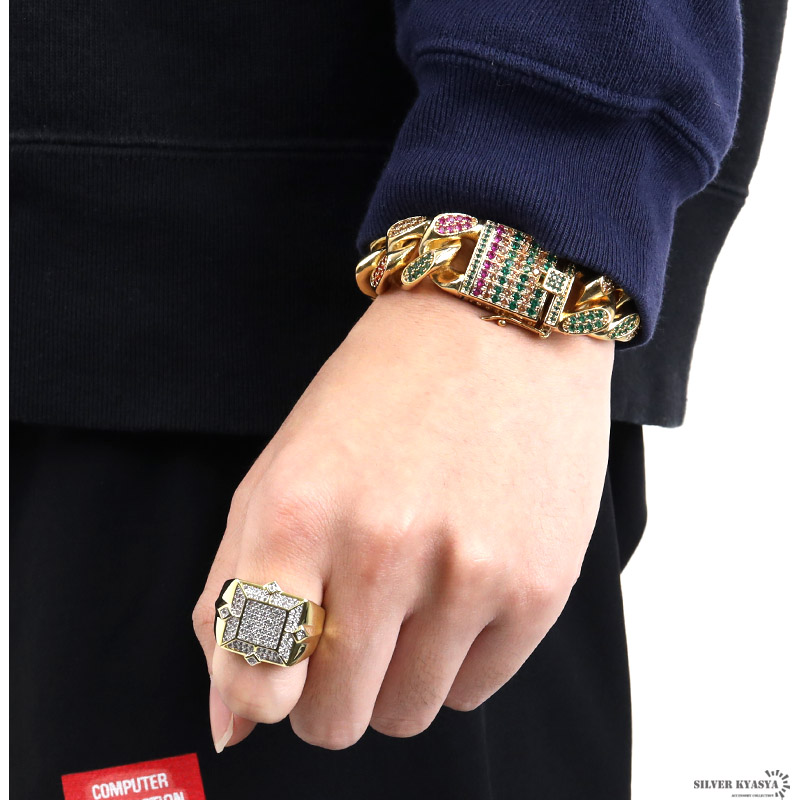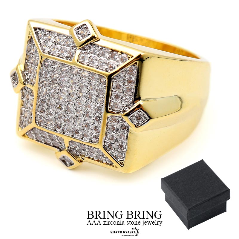 印台リング ブリンブリン パヴェ キュービックジルコニア CZ AAA 指輪 18k GP スクエア 四角 HIPHOP系 B系 ストリート ラップ ゴールド 金 専用BOX付属 爆買