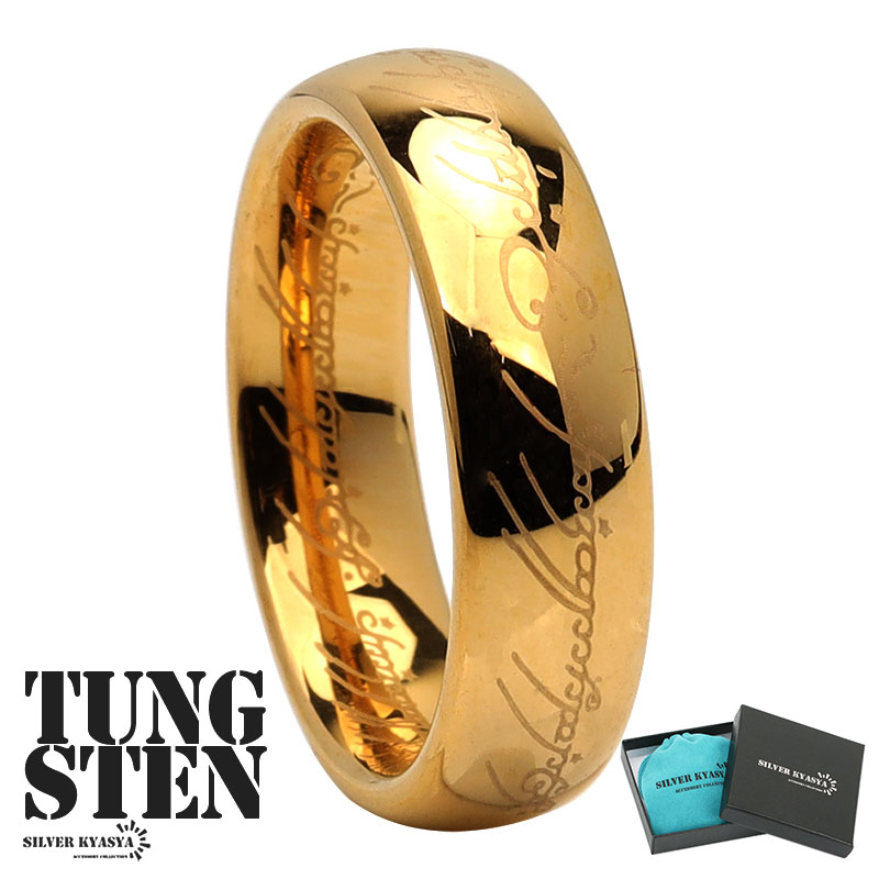 タングステン リング 指輪 メンズ 金 ゴールド 火文字 18金 18k gp 専用BOX付属 プレゼント