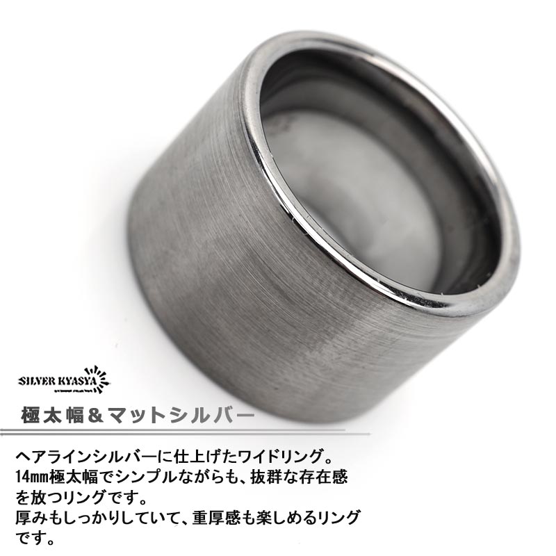 ■ヘアラインシルバーに仕上げたワイドリング、14mm極太幅で抜群な存在感を放つ指輪!