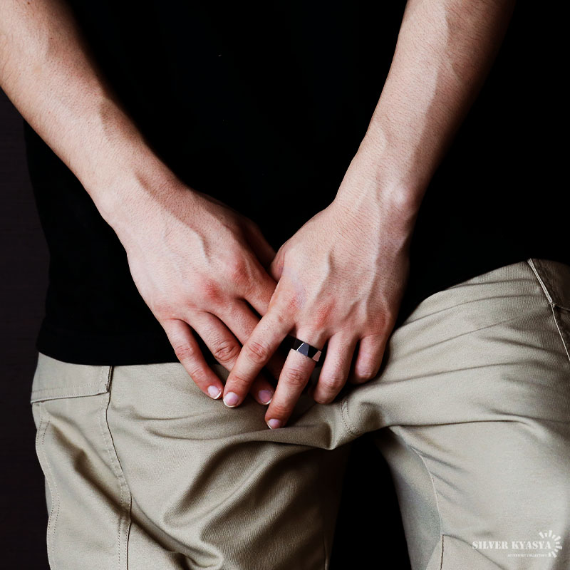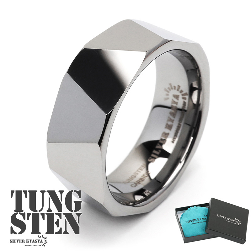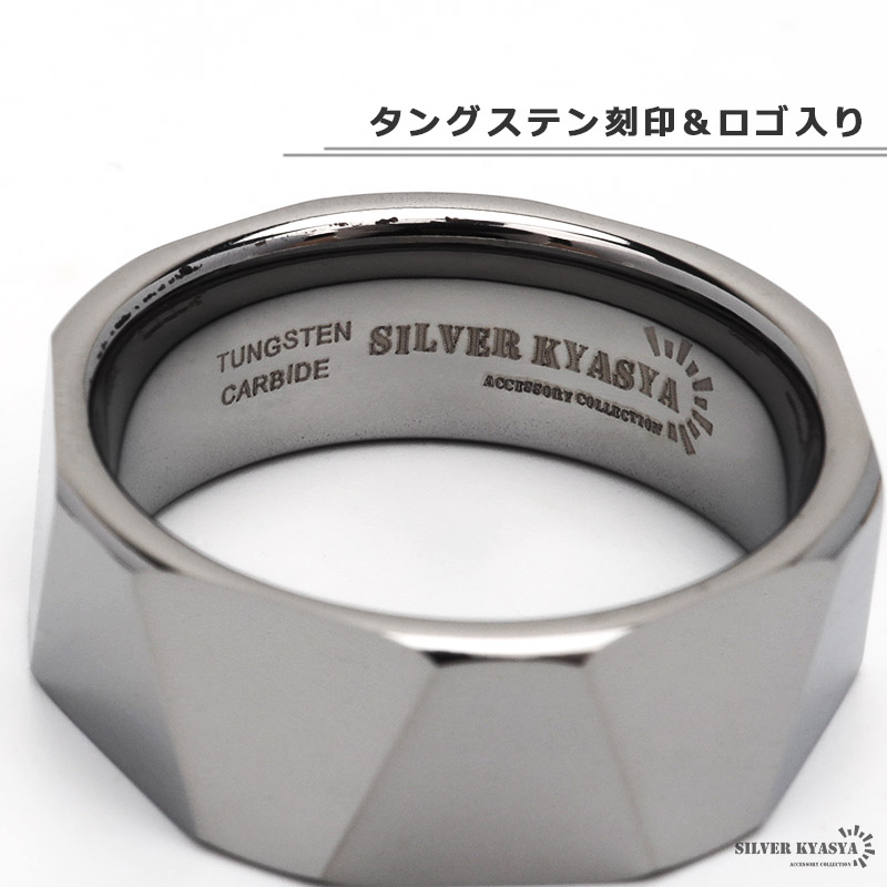 タングステン リング メンズ カットリング シルバー 銀色 ダイヤモンドカット ごつい 金属アレルギー対応
