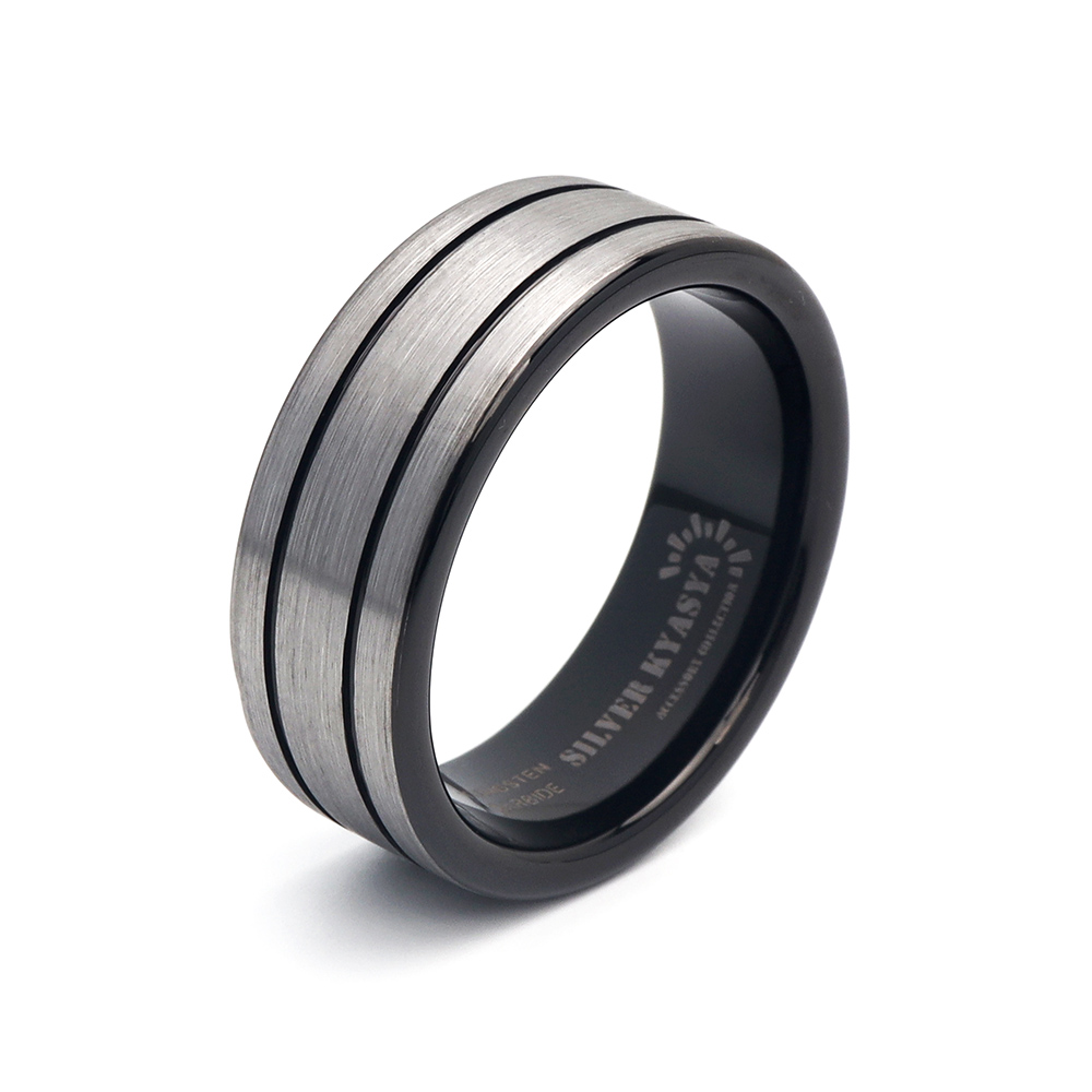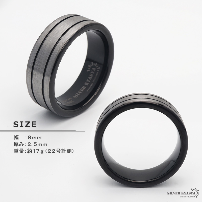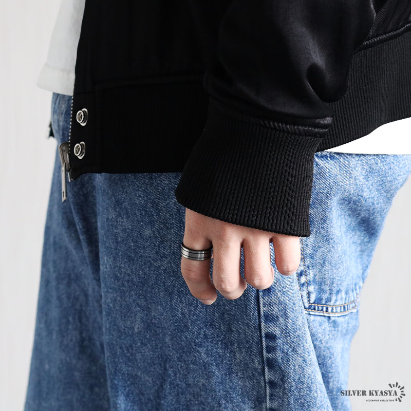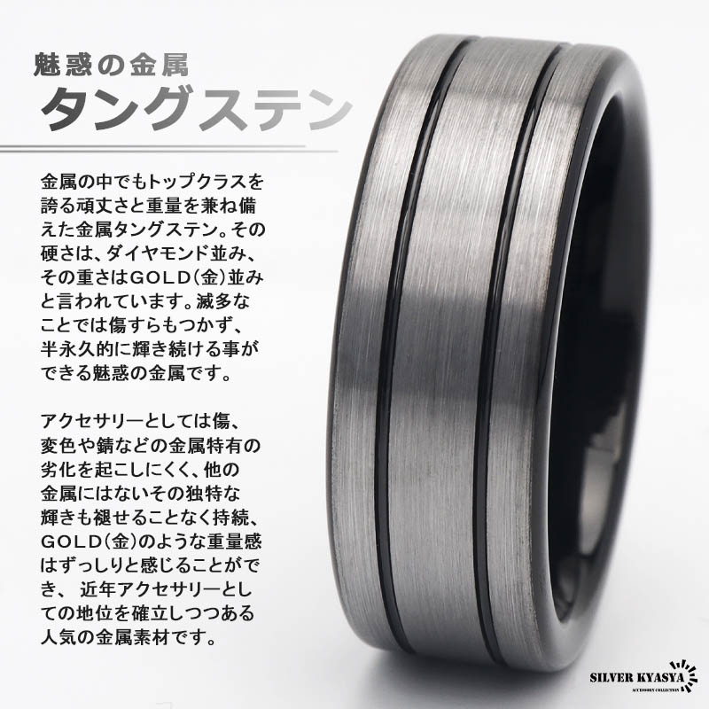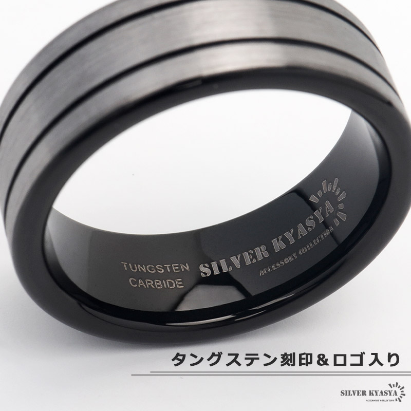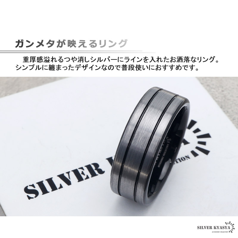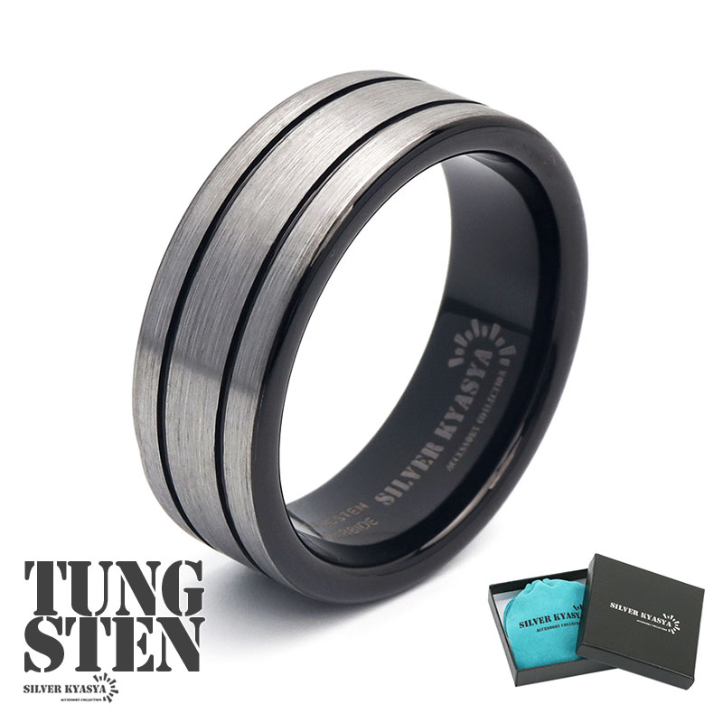 タングステン ライン リング ブラック メンズ 指輪 シルバー 銀 黒 マット つや消し シンプル スマート バイカラー 金属アレルギー対応 専用BOX オリジナル