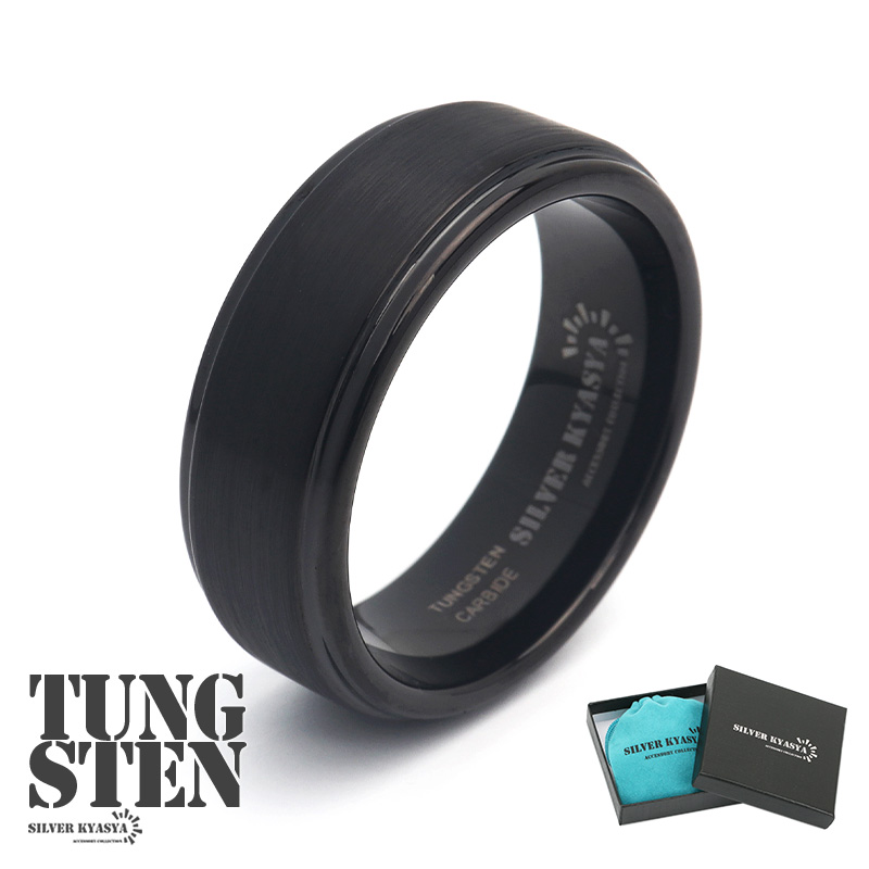 タングステン ブラック リング メンズ 指輪 黒 シンプル マット スマート 金属アレルギー対応 専用BOX オリジナル