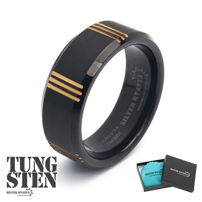 タングステン ゴールド ライン リング メンズ 指輪 金 黒 ブラック つや消し マット スマート お洒落 金属アレルギー対応 専用BOX オリジナル