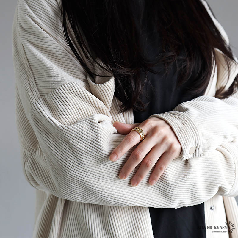 朝と夜をモチーフにしたリング。魅惑的な浮き彫り仕様。全4カラー。ユニークなデザインで指元のアクセントにおすすめです。