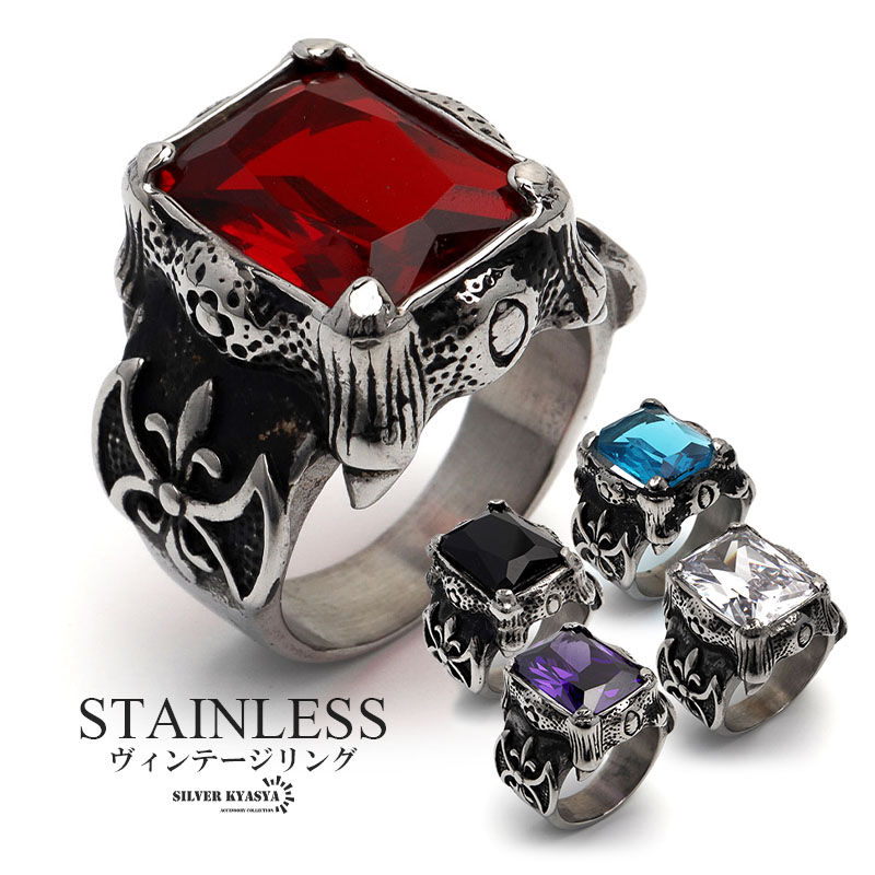 カレッジリング ステンレス CZ メンズ ヴィンテージリング シルバー 大粒 燻 アンティーク つけっぱなしOK 爆買