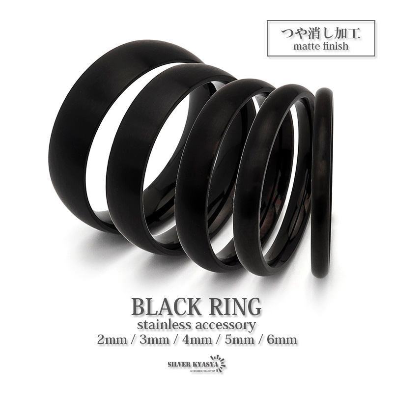 つや消し ブラックリング メンズ レディース ステンレスリング IP 幅2mm 3mm 4mm 5mm 6mm マット 指輪 甲丸リング 金属アレルギー対応