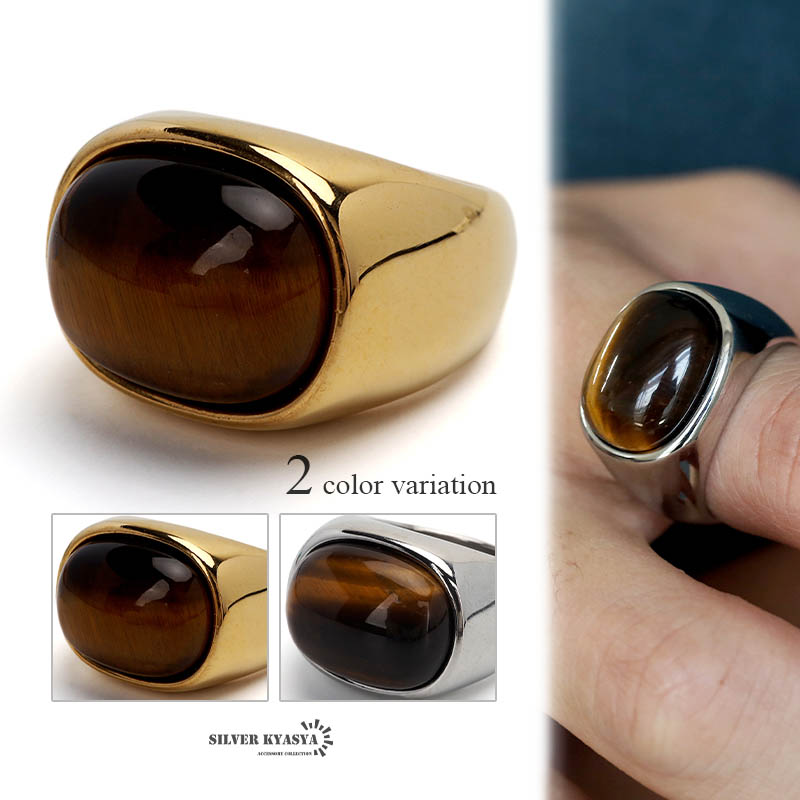タイガーアイリング 天然石 メンズ指輪 大きめ パワーストーンリング ステンレス製 シルバー ゴールド ごつい リング 重厚感 石リング 金属アレルギーフリー