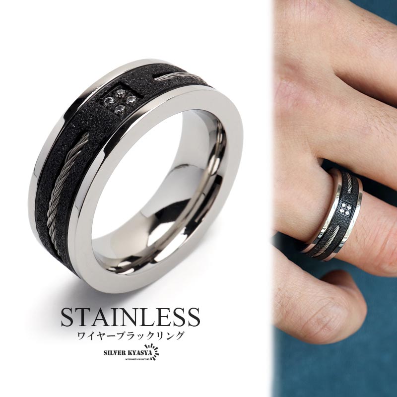 機械美 指輪 砂目リング メンズ ワイヤー ブラックリング 黒 重厚感 存在感 高級感かっこいいリング シンプル指輪 付けっぱなしOK 安心ステンレス製