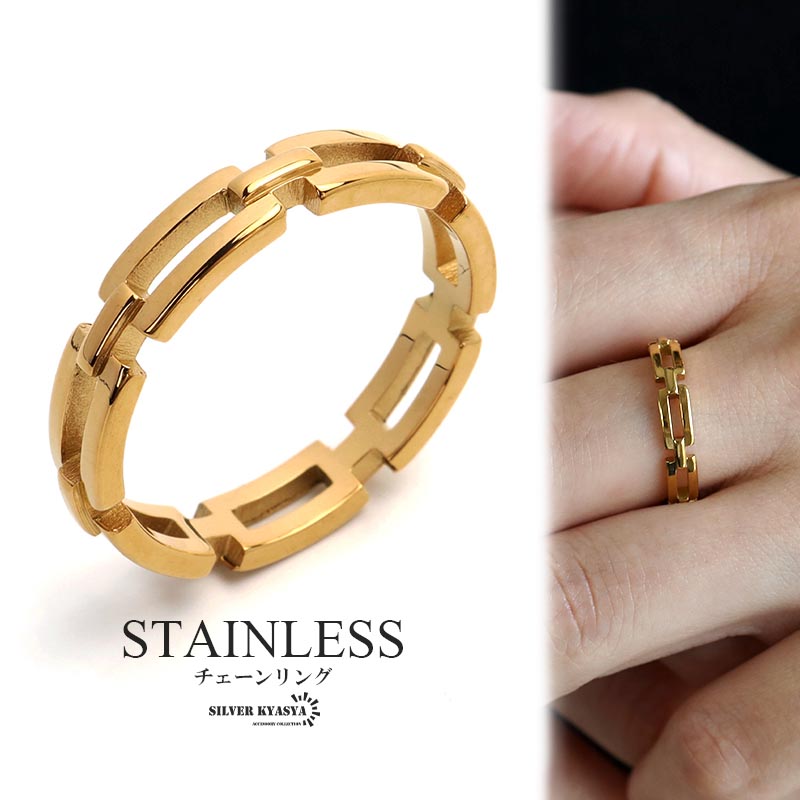 18k gp 金 リング 細め 指輪 レディース チェーンリング シンプルリング ゴールド 付けっぱなしOK 安心ステンレス製 金属アレルギーフリー