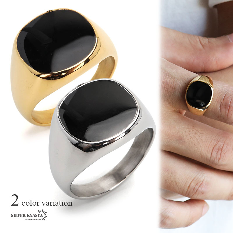印台リング ブラック オニキスリング スタンプリング シグネットリング ゴールド シルバー 2カラー 金色 銀色