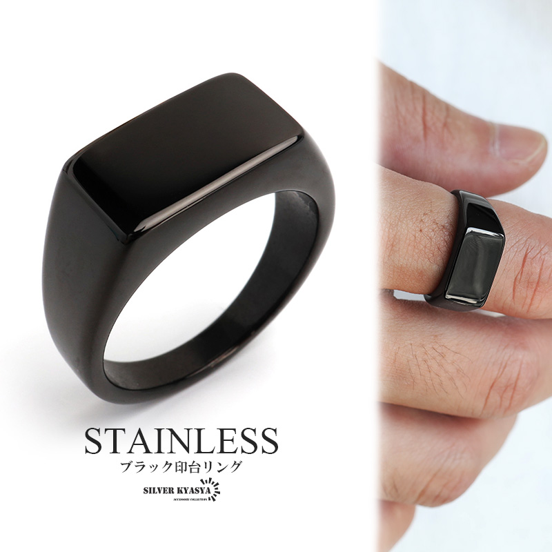 印台リング スタンプリング シンプル シグネットリング 鏡面仕上げ ステンレス ブラック 指輪 金属アレルギー対応