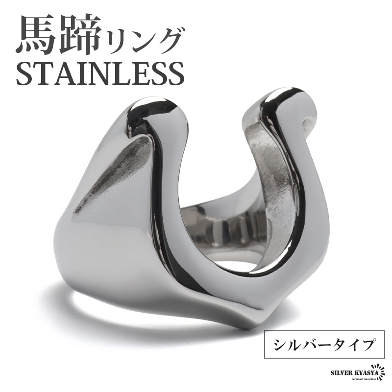 ステンレス 馬蹄リング 印台リング シルバー プレーン ホースシューリング シンプルリング メンズ 指輪 男性 金属アレルギー対応