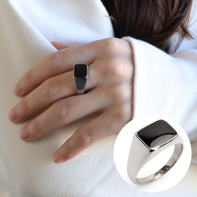 ステンレス 印台リング ブラック シグネットリング シルバー スタンプリング 小指 スクエア シンプル レディース 指輪 女性 金属アレルギー対応