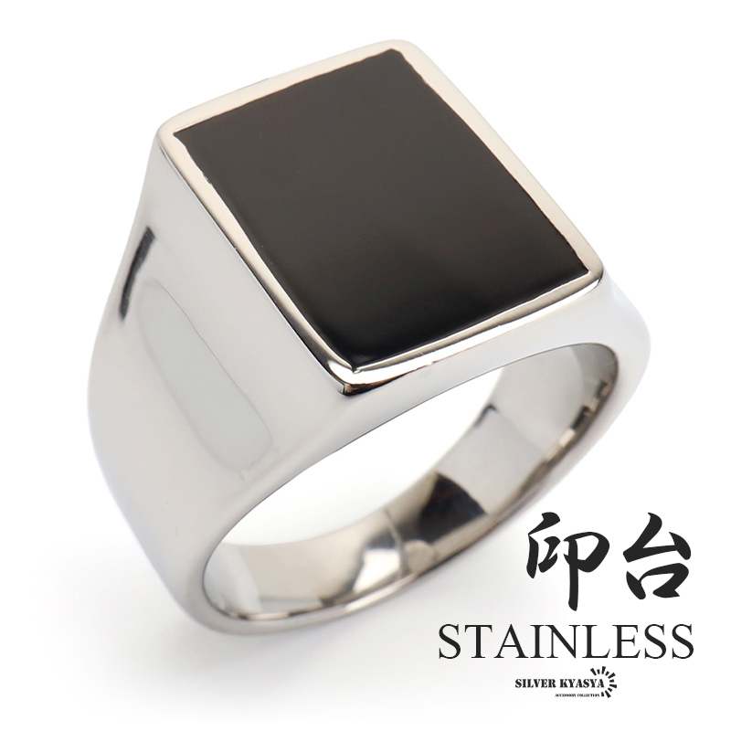 ステンレス 印台リング ブラック シグネットリング シルバー シンプル スタンプリング 小指 スクエア 重厚感 太め メンズ 指輪 男性 金属アレルギー対応