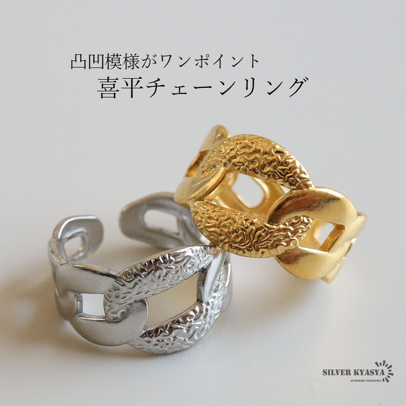 喜平チェーンリング ぷっくり ゴールドリング 指輪 18KGP ゴールド シルバー ステンレス ワイドリング 幅広 凸凹 レディース フリーサイズ 金属アレルギー対応