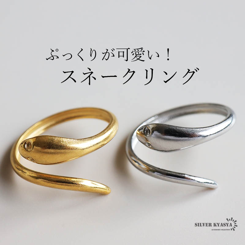 スネークリング 巻き付く 蛇リング メタリック 指輪 18KGP ゴールド シルバー ステンレス ぷっくり 個性的 レディース フリーサイズ 金属アレルギー対応 爆買