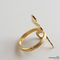 蛇が巻き付く個性的なスネークリング。表面の凹凸が光を不規則に反射し、優しく輝きます。大きめのシルエットでアクセントに最適のアイテム。