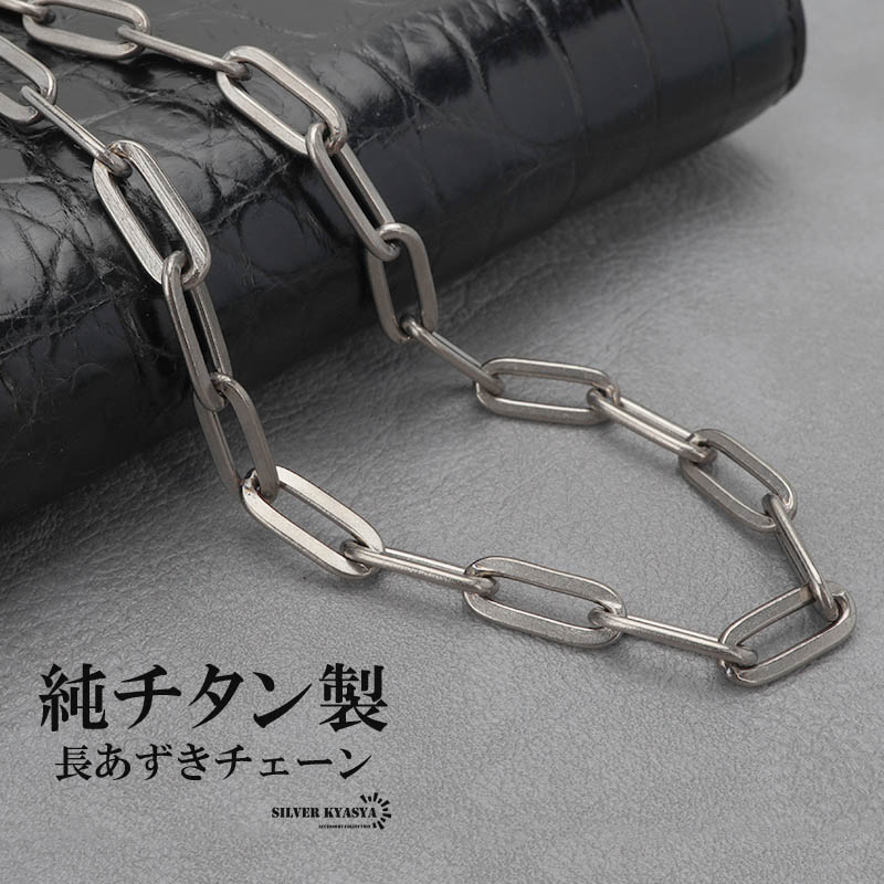 純チタン 長あずきチェーンネックレス チタンチェーンネックレス シルバー 軽い 水場でも 付けっぱなし 金アレでも チタニウム