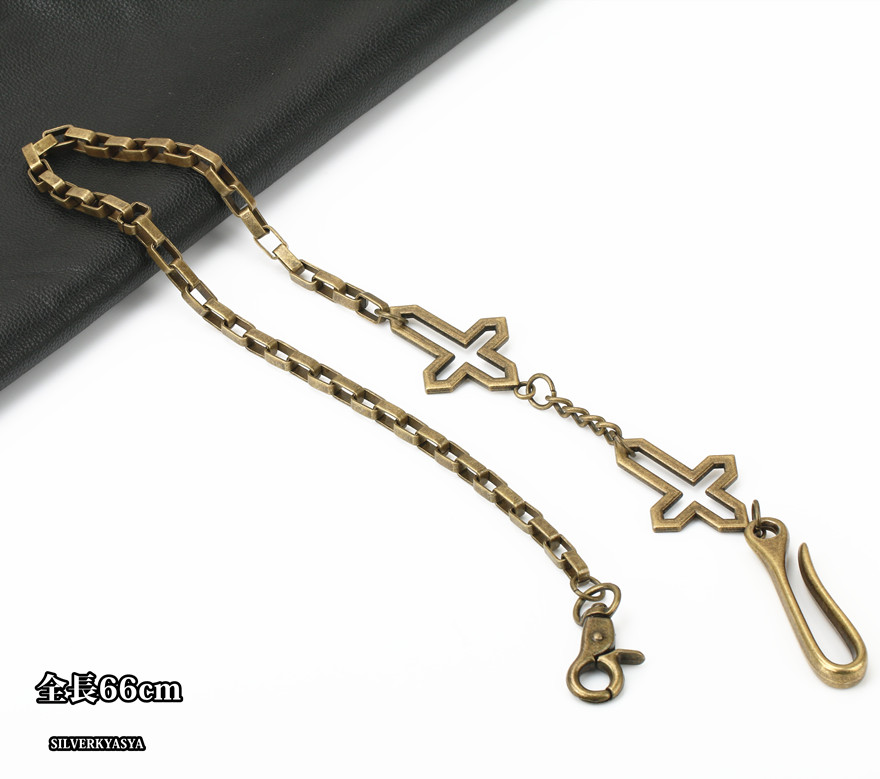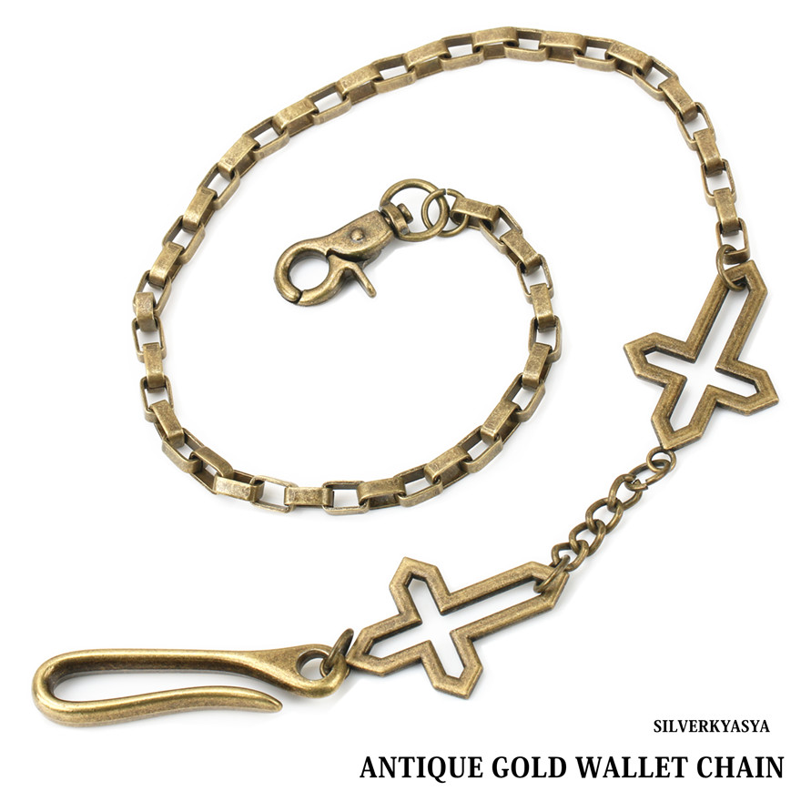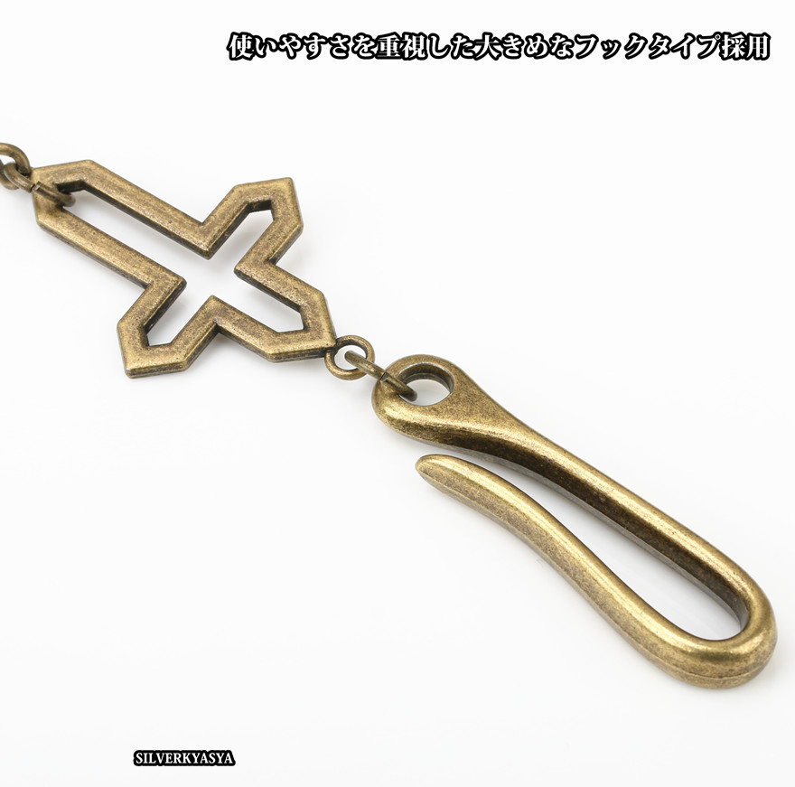 ダブルクロス フック ウォレットチェーン アンティークゴールド クリップ チェーン 50cm ナスカン クロス 釣り針