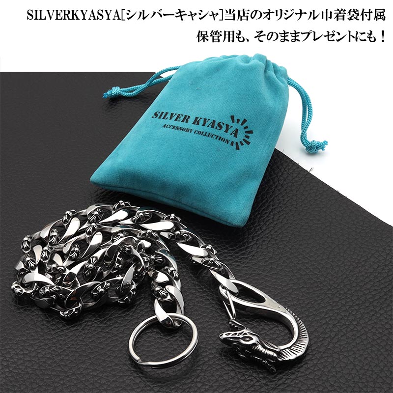 316L ステンレス ドラゴン 1クリップ ウォレットチェーン フック クロスチェーン クラシック 重厚 存在感抜群 ハンドメイド