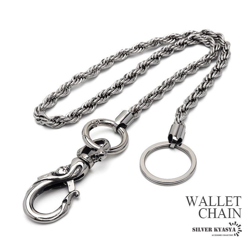 ステンレス ウォレットチェーン シルバー メンズ 財布 ロープチェーン スカル フック 鎖 盗難防止 紛失防止