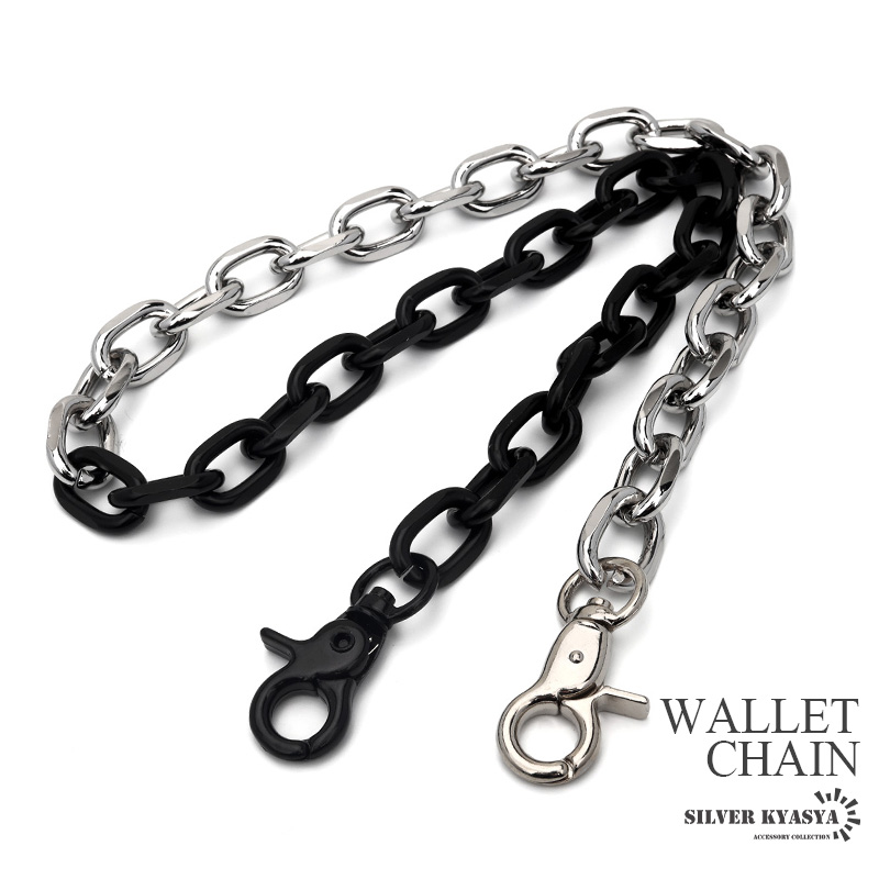 ブラック シルバー ツートン ウォレットチェーン メンズ バイカラー 2クリップ 財布 盗難防止 紛失防止