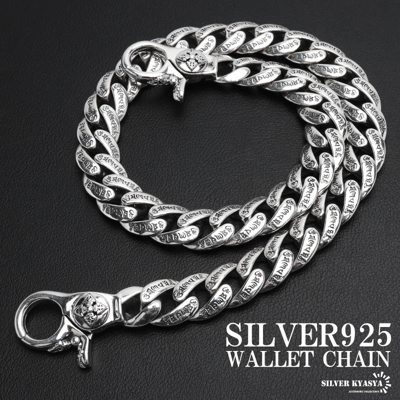 重厚 シルバー925 ウォレットチェーン ペーパーチェーン 梵字 六字真言 喜平チェーン メンズ 2クリップ 財布紐 財布 鎖