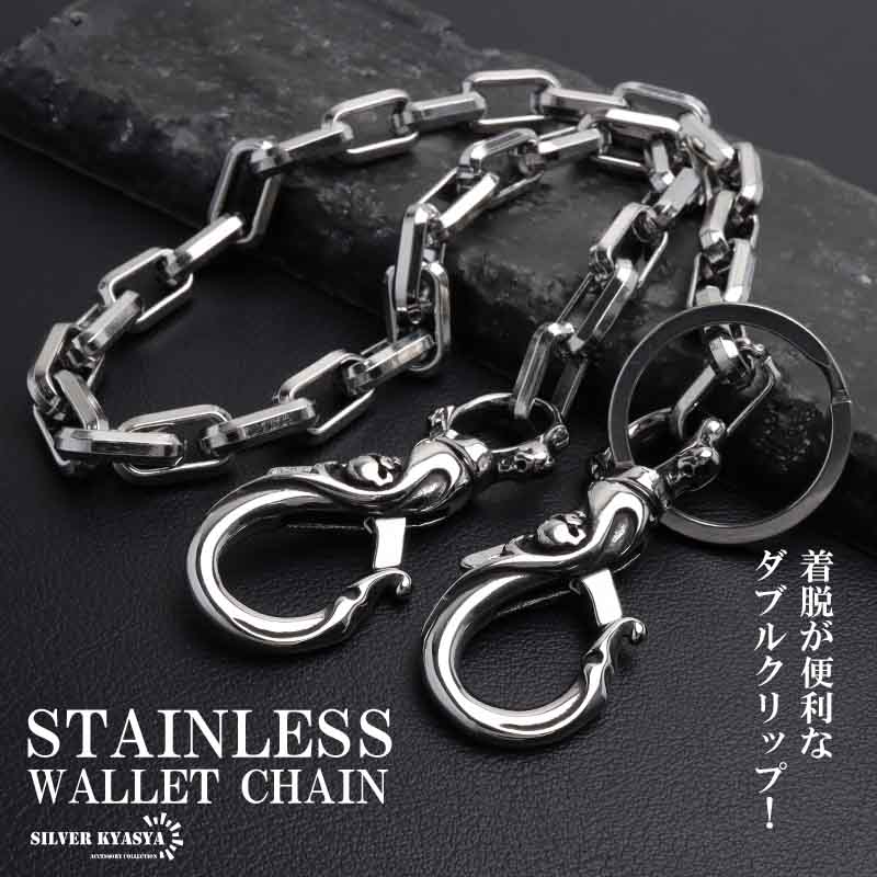 ステンレス ウォレットチェーン 財布 シンプル 316L 唐草 スカル 2クリップ メンズ ズボン アメカジ 財布紐