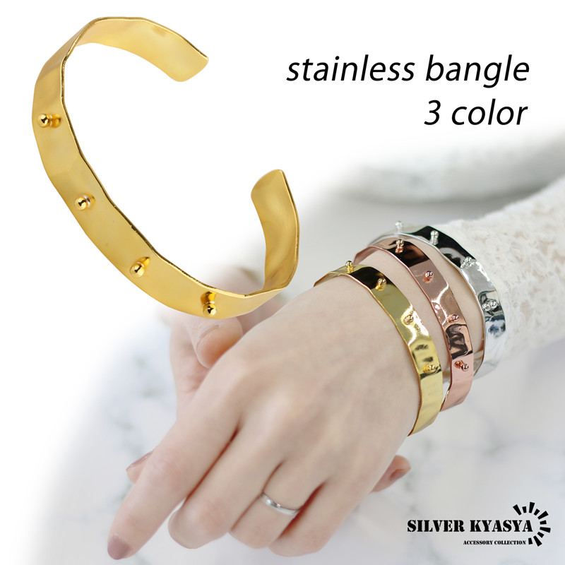 (シルバー) ステンレス 平打 ゴールド バングル pink シルバー ピンク 銀色 金色 ブレスレット 3カラー