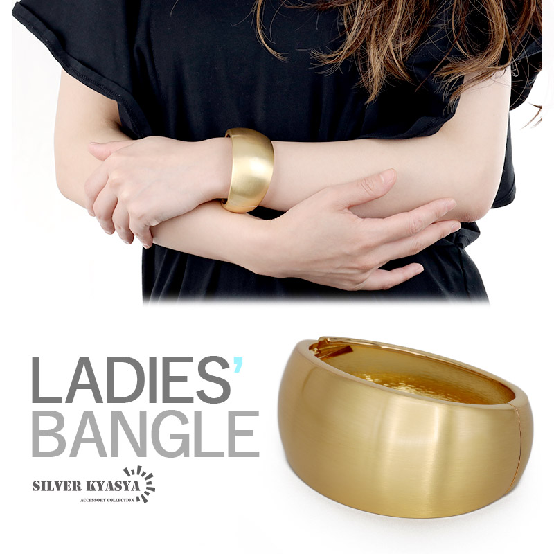 つや消し ワイドバングル ラウンド シンプルバングル 太め 幅広 太めバングル 大ぶり ゴールド 開閉式 カジュアルバングル 腕輪 レディース