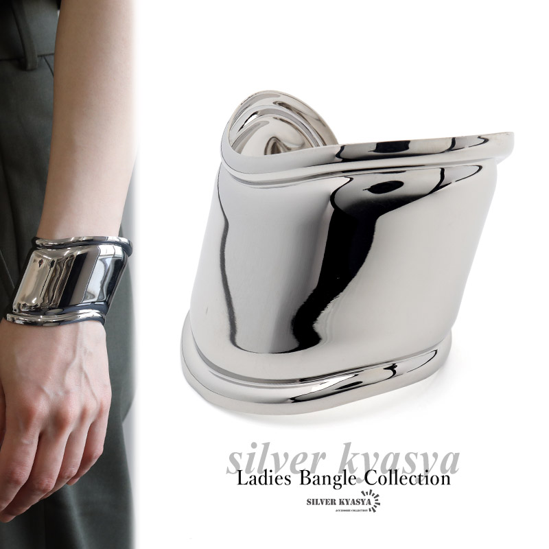 ワイドバングル シルバー 太めバングル 太幅 極太バングル 波 ボーンカフバングル ウェーブ 波 レディース ブレスレット 大ぶり