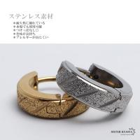 (ブラック) ステンレス素材 片耳 フープピアス シルバー ブラック ゴールド 艶消しピアス シンプルピアス メンズ 砂目