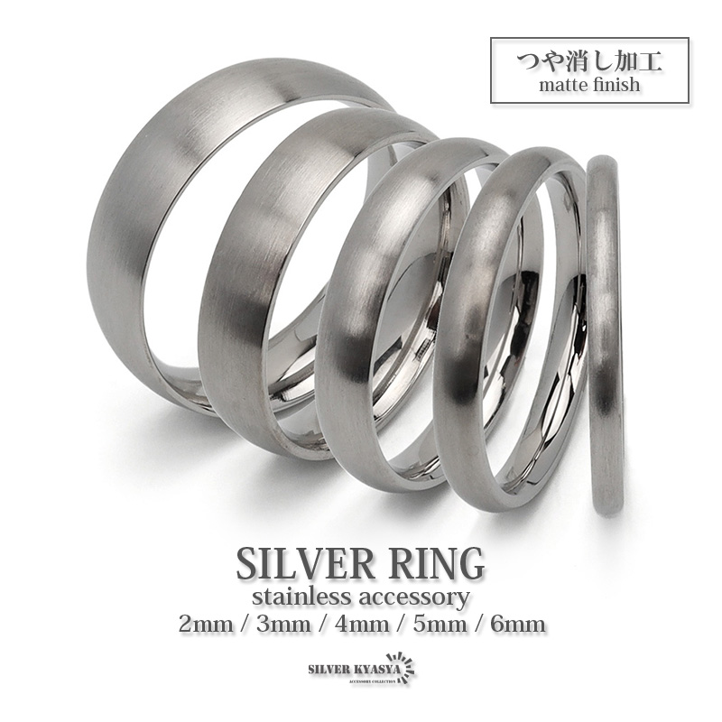 (4mm幅、9号) つや消し シルバーリング メンズ レディース ステンレスリング マット 指輪 金属アレルギー対応