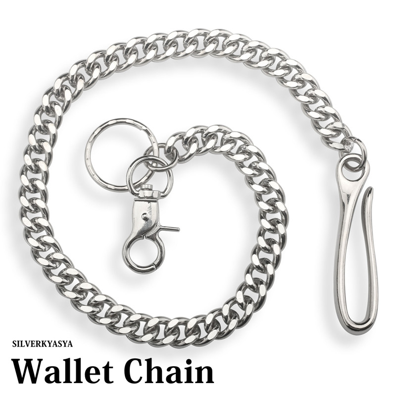 シンプル ウォレットチェーン フック クリップ 喜平チェーン 50cm ナスカン リンクメール便で送料無料