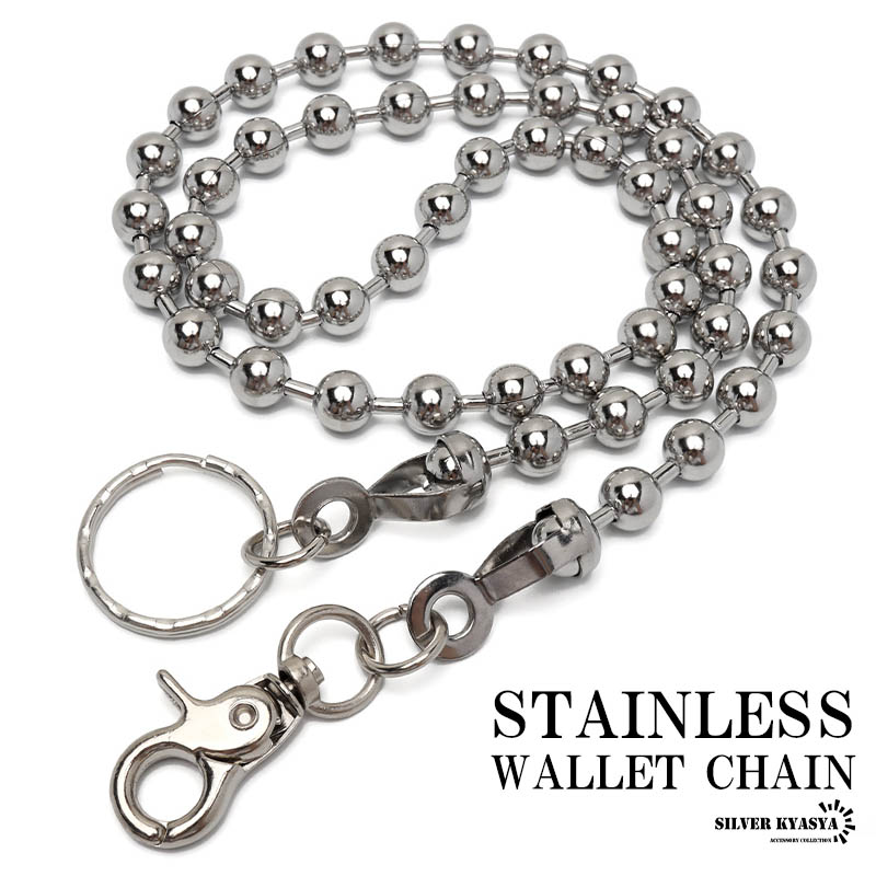 ステンレス ウォレットチェーン ボールチェーン シルバー 幅10mm 全長88cm 太幅 ごつめ メンズ メタル クリップ