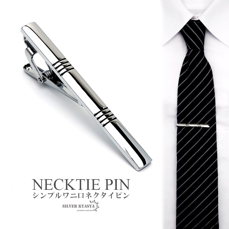 ネクタイピン タイピン タイクリップ シルバー フォーライン ワニ口 メンズ レディース 父の日 ビジネス フォーマル