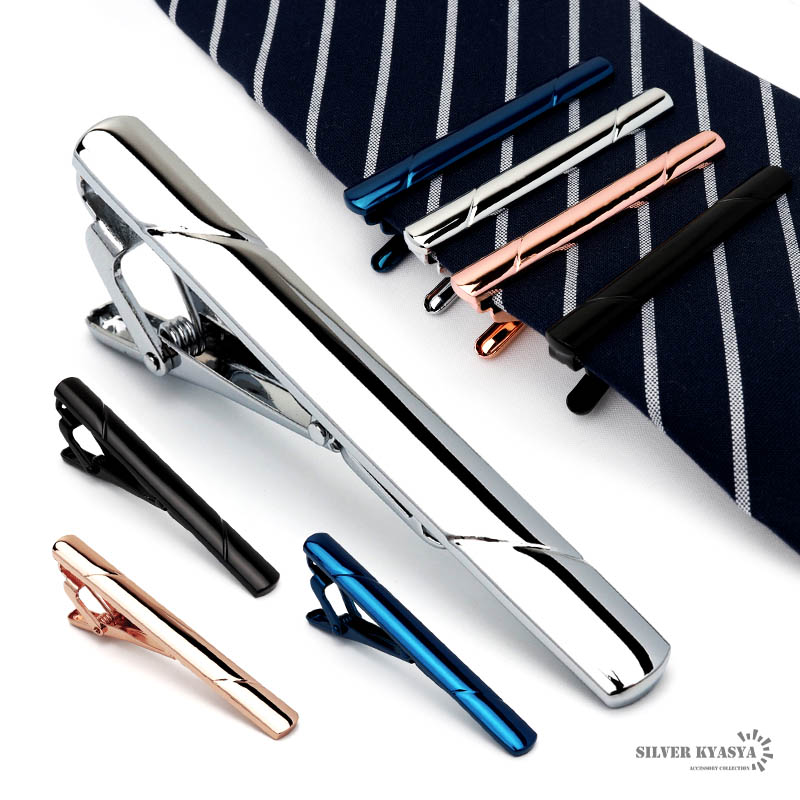 ネクタイピン シンプル タイピン タイクリップ カラー シルバー ピンク ブラック ブルー ワニ口 メンズ 父の日 ビジネス フォーマル プレゼント ギフト