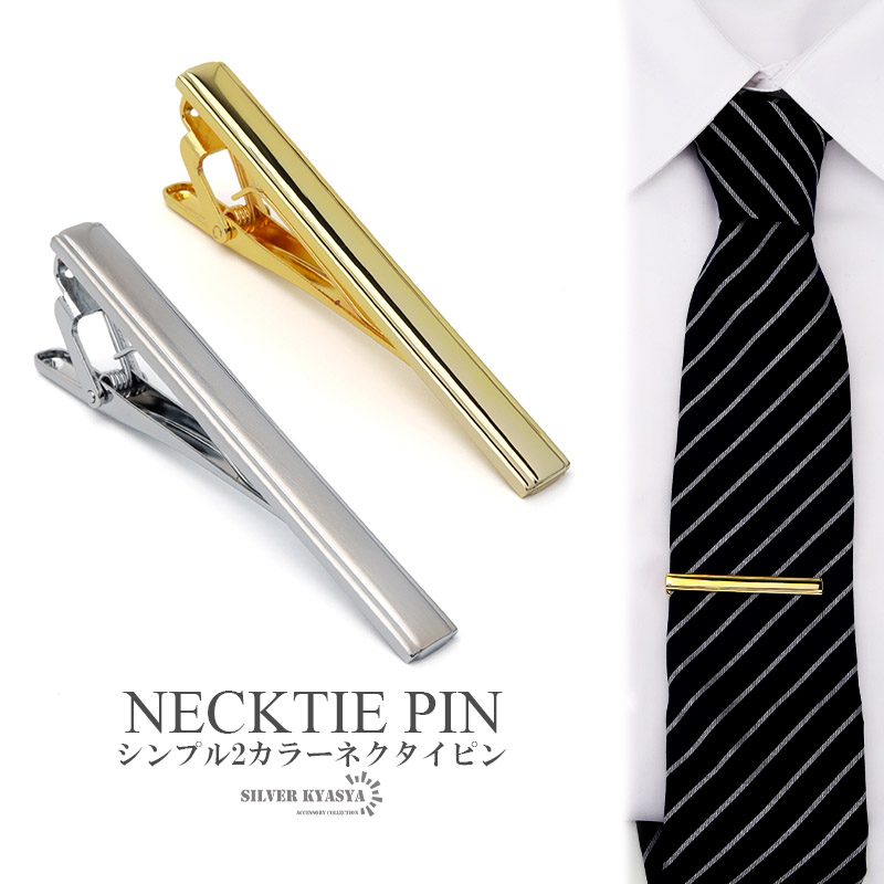 ネクタイピン ゴールド シルバー シンプル タイピン オフィス メンズ 男性 ワンタッチ