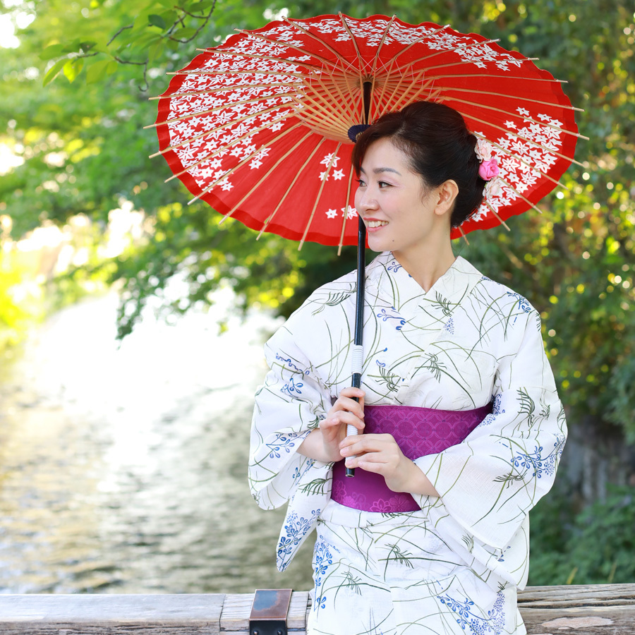 浴衣の重さや涼しさを保つために、生地は適度に薄く透け感がございます。ゆかた下スリップなどのご着用をお薦めいたします。