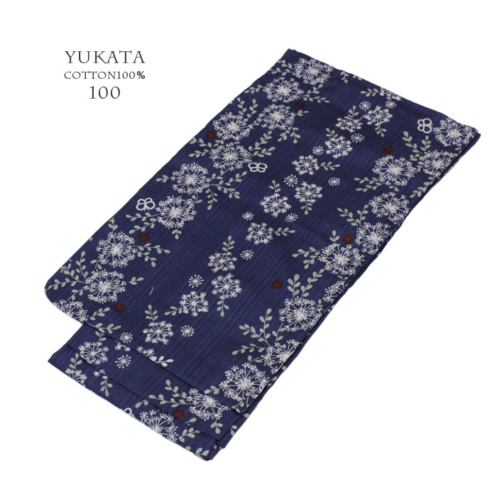 【100サイズ・02】ナチュラル系 女児浴衣 ハーブ 紺 100cm 肩上げ・腰上げ済み 付け紐付き 綿100% naturalカラーでちょっとお洒落に