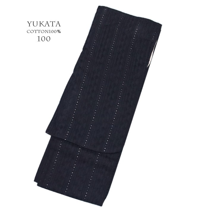 【100サイズ・20】ナチュラル系 女児浴衣 黒 100cm 肩上げ済み・腰上げ済み・付け紐付き 綿100% naturalカラーでちょっとお洒落に素敵に浴衣を楽しもう