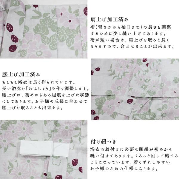 ナチュラル系 女児浴衣セット 草花・アイボリー 120cm 作り帯付き 肩上げ済み・腰上げ済み・付け紐付き 綿100%